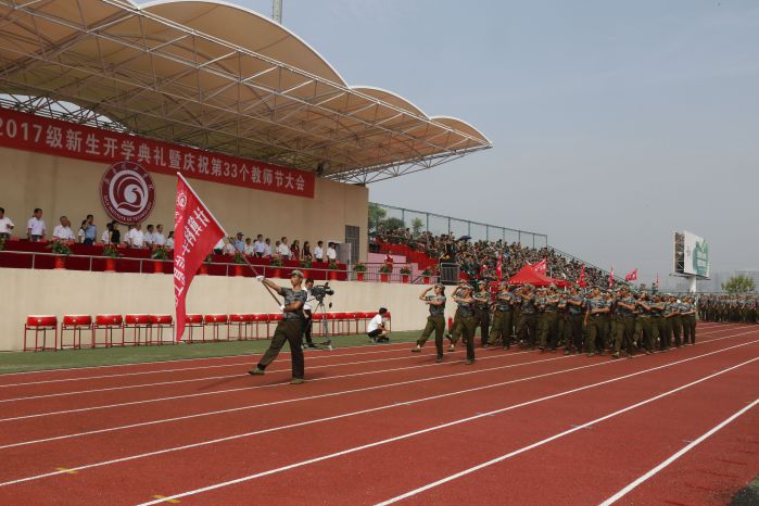 金风送爽,硕果飘香。9月9日,正值第33个教师节来临之际,我校2017级新生军政训练总结大会暨开学典礼在体育场隆重举行。原济南军区副参谋长、问鼎网页版登录入口高级顾问赵立德将军,问鼎网页版登录入口董事会董事、原山东医科大学校长王琰璧教授,问鼎网页版登录入口校务委员会主任、济南大学原校长奚正楷教授,问鼎网页版登录入口专家委员会主任、原校长朱摩西教授,军训团团长吕成永同志、政委高奇同志,问鼎网页版登录入口党委书记向来生同志,校长常翠鸣教授,校委会、党委会、二级学院领导出席典礼并在主席台就座。大会由副校长陈月吉主持。