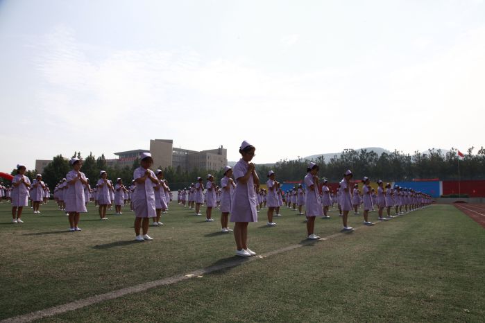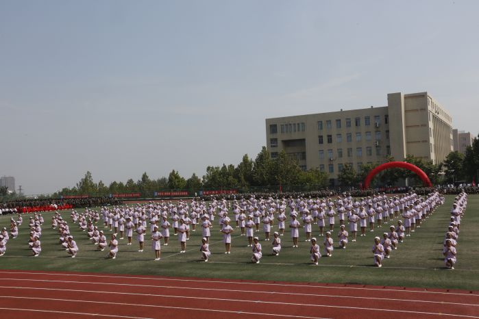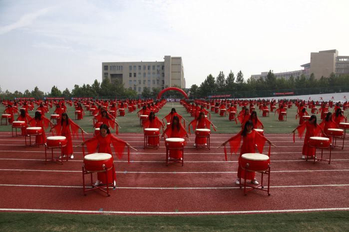 随后,2017级新生大型团体项目表演开始。首先上场的是铿锵有力的中国鼓,200名学子鼓槌飞抡,鼓声雷动,恰似彩云在天空飞舞;阵容强大的啦啦操表演和着轻快的旋律,整齐划一,活力四射;军体拳表演一招一式动作精炼,节奏分明,淋漓尽致的展现出了军人的风貌;歌舞《青春圆舞曲》优雅十足,充满青春活力;护理学院手语操《感恩的心》动作整齐,着装统一,以优美的肢体语言演绎出了真挚的感恩之心,充分展现了未来白衣天使的风采。