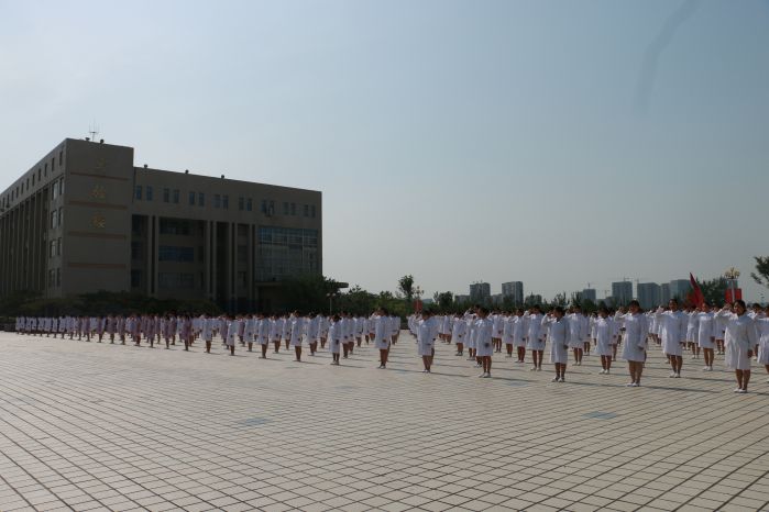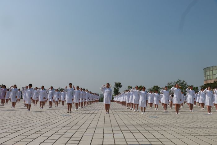 护理学院全体学生表演了手语操《感恩的心》,表达了为患者无私奉献、以拯救人类健康为己任的理想与追求。