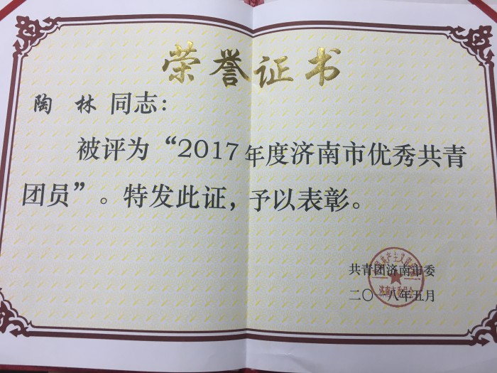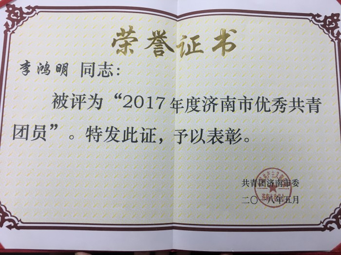 近日,共青团济南市委下发《关于2017年度五四系列表彰的决定》,商学院、护理学院团总支荣获“济南市五四红旗团总支”称号;机械与车辆工程学院团总支书记姜建腾荣获“2017年度济南市优秀共青团干部”称号;土木工程学院2014级土木工程二班学生陶林、商学院2015级贸易经济一班学生黄玉立、电气信息工程学院2015级电子信息工程班学生李鸿明荣获“2017年度济南市优秀共青团员”称号。