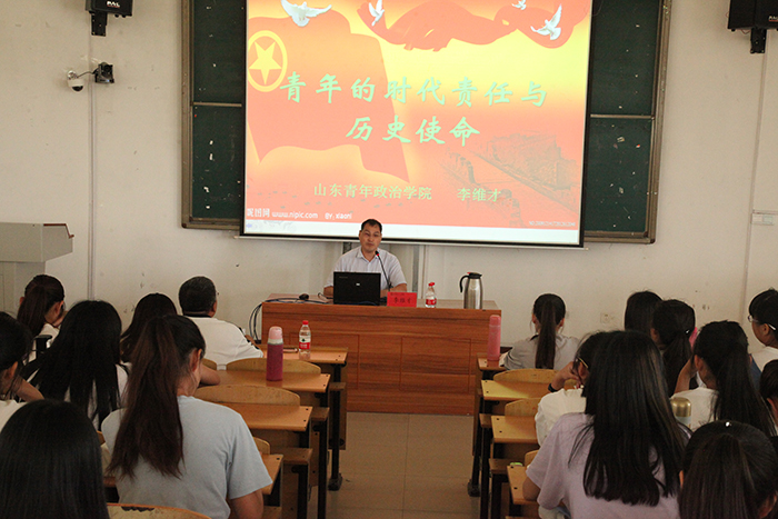 6月14日,我校“学习新思想千万师生同上一堂课”活动邀请到了山东青年政治学院的李维才博士进行授课,授课题目为《青年的时代责任与历史使命》。师生代表200余人在主会场圆阶教室聆听了报告,其他同学同步视频听取报告。