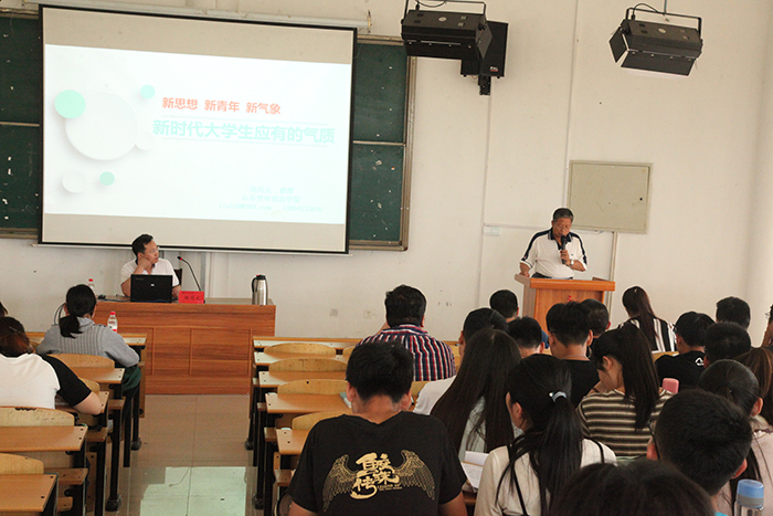 刘丙元教授首先从习近平新时代中国特色社会主义思想入题,见解独特地阐释了习近平新时代中国特色社会主义思想的四个基本特质,“不忘初心、方得始终”的原则和主线,之后结合习近平关于青年的有关论述和讲话精神,探讨了习近平眼中对时代青年的定位、对青年的期待与关心、青年是否值得被依托、如何使青年有担当等话题,最后解读新时代对青年大学生的素养和气质要求,提出大学生需要适应新时代,应有一信、二爱、三正、四懂、五会的气质。