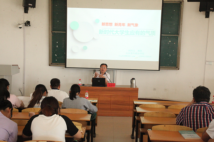 6月14日下午,我校“学习新思想千万师生同上一堂课”活动继续开讲,本次授课邀请到了山东青年政治学院博士生导师刘丙元教授,做了题为《新思想、新青年、新气象-新时代大学生应有的气质》的专题报告。师生代表240余人在主会场圆阶教室聆听了报告,其他同学同步视频听取报告。