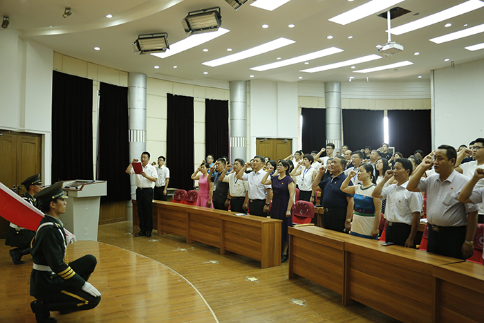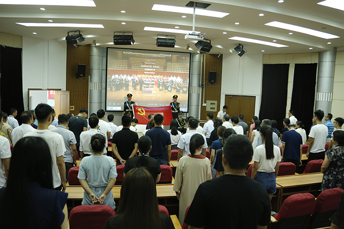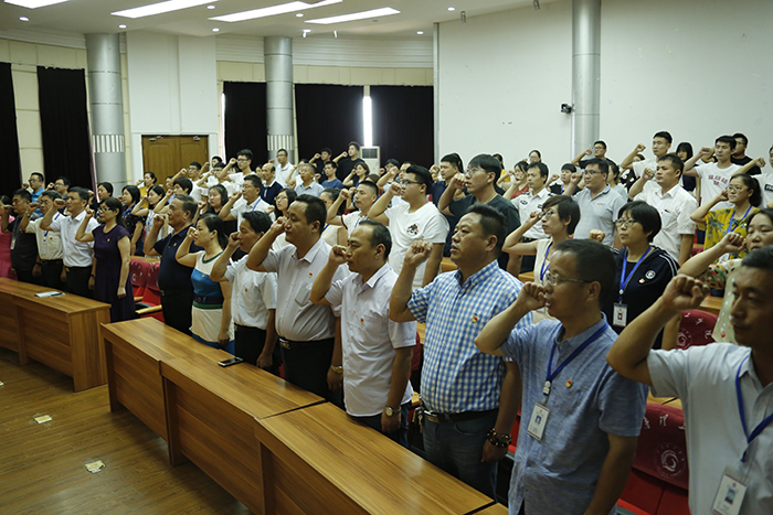 为庆祝建党97周年,坚定全体党员不忘入党初衷,6月29日下午,我校党委在实验楼报告厅组织开展了“不忘初心,牢记使命”重温入党誓词活动。我校党政领导和党员代表100余人参加了宣誓活动。
