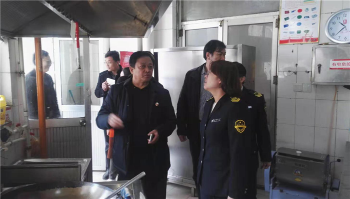 2019年3月14日上午,章丘食药局张雪青科长一行3人对学校餐厅进行例行检查,学校副校长陈月吉、餐饮中心主任刘从明全程陪同参加。经过近2小时综合检查,检查组未发现影响食品卫生安全的问题,对餐厅员工培训、原材料验收、餐厅整体工作秩序给予充分肯定。