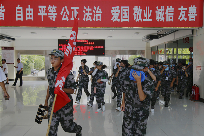 9月4日,保卫处、学生处和各二级学院组织进行了2019级新生军政训练逃生演练。副校长陈月吉,保卫处、学团工作部以及各二级学院相关领导参加了演练全过程。