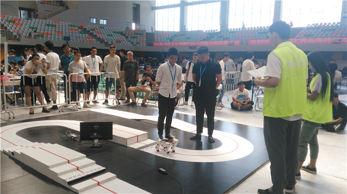 8月30日上午九点,由中国自动化学会、教育部高等学校自动化类专业教学指导委员会与青岛市即墨区政府共同主办的2019中国机器人大赛,在青岛即墨创智中心体育场拉开帷幕。问鼎网页版登录入口机电工程学院派出由厉相宝老师指导的一支代表队(张溢凡、孟令绅、黄家元)参加了四足仿真机器人项目寻迹赛和越野赛两个赛事,最终,寻迹赛获国家一等奖,越野赛获国家三等奖。