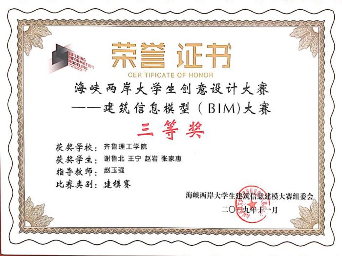 两岸建筑信息模型(BIM)大赛始于2016年,先后由厦门理工学院、金门大学及闽南理工学院承办,邀请台湾及福建省、山东省等各大院校开设土建、造价、机电等相关专业的院系参与。赛场上,我校选手配合默契,历经6个多小时的紧张比赛,最终荣获大赛三等奖,我校获优秀组织奖,赵玉强老师获优秀指导教师。此次比赛引导学生熟练掌握BIM技术,提高了学生的实践操作能力,增强了学生的团队协作理念,进一步推进了我校与各高校学生之间的交流。