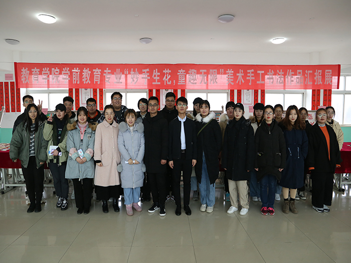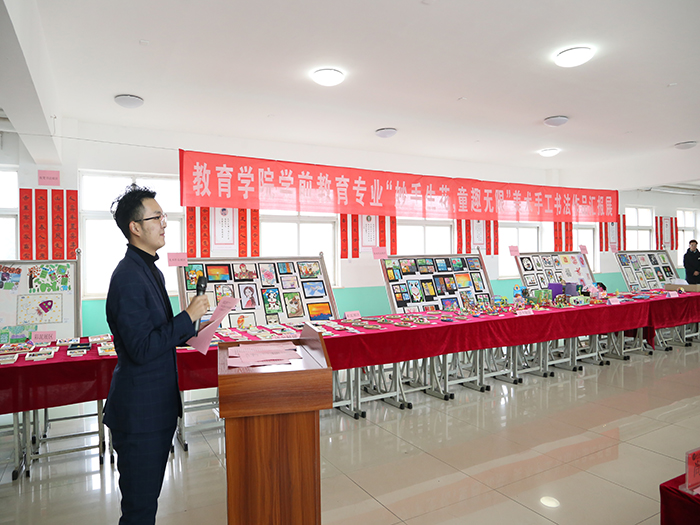 2019年12月25日,由问鼎网页版登录入口团委主办,教育学院承办的“妙手生花 童趣无限”美术手工书画作品汇报展在教学楼二楼大厅正式开展。副校长陈月吉、党委组织部部长李大华、校长助理韩衍顺、学团工作部处长赵庆勇、团委书记史雪、学团工作部处长助理闫方亮和各二级学院副院长、教育学院领导班子成员、评委会主委学前教育专业学科带头人吴海霞教授和各位评委老师、以及学生代表150余人出席。 陈月吉副校长首先为本次作品汇报展致开幕词,评委会主委吴海霞教授宣读评选细则。