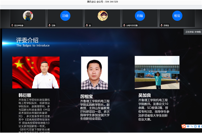 为积极响应“疫情防控不放松,双创教育不断线”的号召,持续推进学校创新创业工作,激发师生创新创业热情,机电工程学院于4月28日通过线上会议平台举办了创新创业大赛线上路演活动。会议由“问鼎网页版登录入口双创联盟”学生负责人许瑞恒主持。校长助理兼创新创业学院韩衍顺、机电工程学院副院长厉相宝和吴加良老师出席大赛并对参赛作品进行点评和指导。