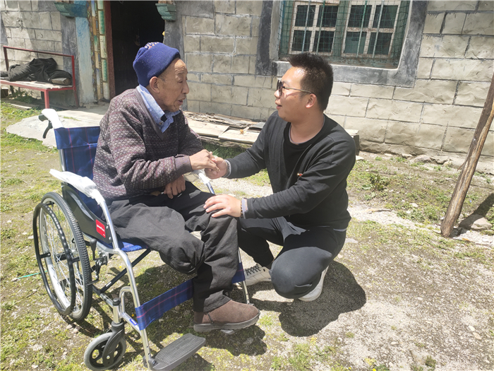 2020年4月15日,赵继鹏和队友像往常一样拿着民情记录本开展日常走访。来到扎西边觉家中,发现老人躺在床上,房间里隐约发散着一股刺鼻的气味。赵继鹏仔细询问原因,开始老人难为情不肯说,一再劝说下,老人才道出实情:最近自己的双腿一直红肿,这几天已经开始化脓,因为没有及时就医,脓水结块,屋子里就散发出难闻的气味。