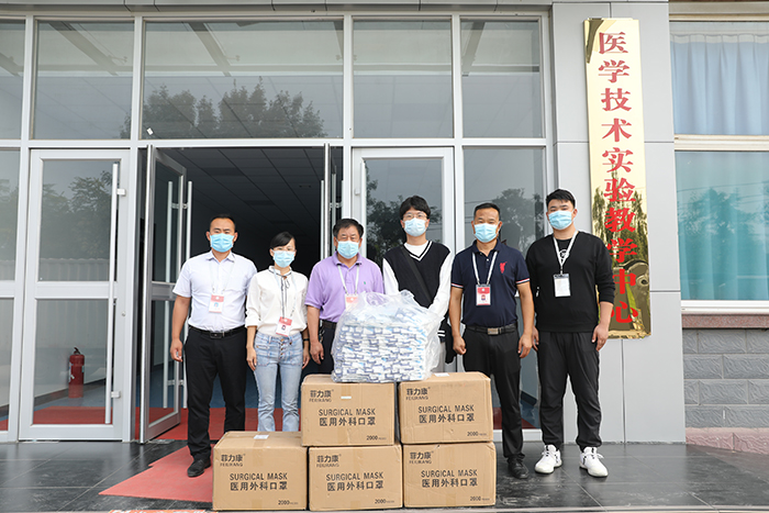 9月24日,我校商学院2018级政治学与行政学朱忠辉同学向学校捐赠1万只口罩,助力学校疫情防控工作。副校长魏希启、校长助理韩衍顺、商学院副院长王华兴等代表学校参加捐赠仪式。