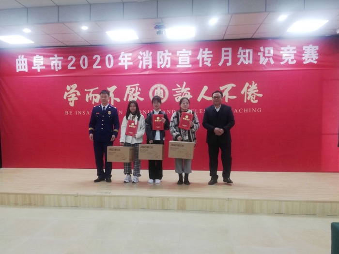 11月7日,由曲阜市消防救援大队、曲阜师范大学主办的曲阜市“关注消防,生命至上”消防宣传月知识竞赛活动圆满结束。我校2019级汉语言文学专业杨金月同学获个人赛第一名;2019级英语田露露、王淑婧,2019级汉语言杨金月同学获团体赛第二名。