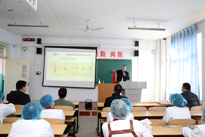 此次参加培训的人员主要是餐厅管理人员和从业人员,安全保卫处副处长孔令强在培训中详细讲解了火灾预防、报警、灭火、应急逃生等消防知识,现场演示了消防应急器材的操作使用,并从人防、物防、技防等方面讲解了如何增强防安全意识和应急技能。培训结束后,与会人员在指定地点进行了灭火器使用及油盘灭火实操演练。
