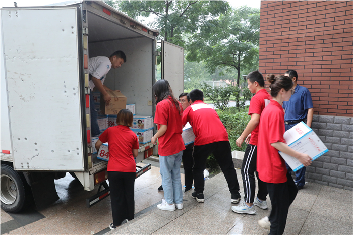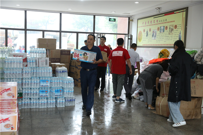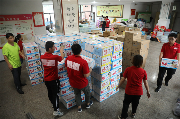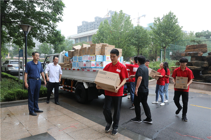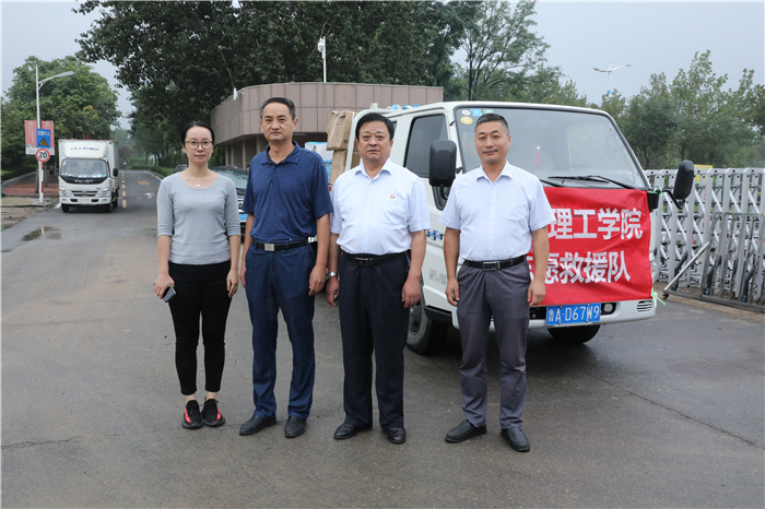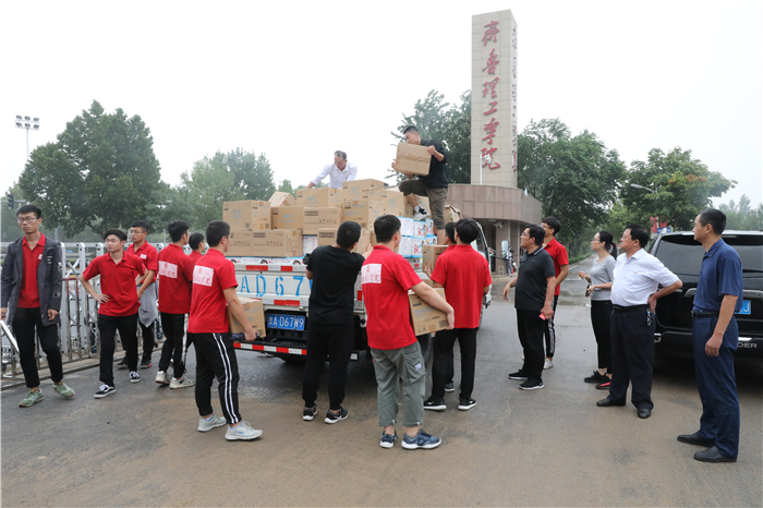 受台风“利奇马”影响,8月10日起,章丘境内普降暴雨,相公庄镇、刁镇等地的部分村庄遭洪水围困,严重威胁着灾区百姓的生命和财产安全,一时间,整个章丘都投入到了抗击“利奇马”的战斗中。章丘的灾情牵动着问鼎网页版登录入口全体师生的心,学校一直对灾情保持着高度关注。在了解到灾区物资紧缺的情况后,学校立即行动起来全力以赴投入到了抗洪救灾的工作中。8月13日,问鼎网页版登录入口副校长陈月吉、组织部长李大华、工会主席赵庆勇、校长(党委)办公室主任韩彦翠带领部分教师和学生志愿者将灾区急需的手电、雨衣、消毒水、驱蚊水等两大车物资送到了位于道通实验学校的救灾物品安置地点。