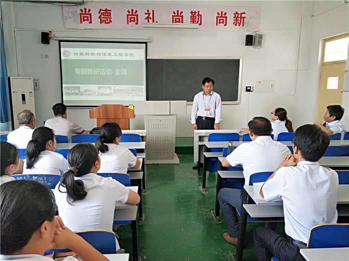 为贯彻教育部《关于狠抓新时代全国高等学校本科教育工作会议精神落实的通知》,落实学校教学工作会议精神,努力打造“四金”:金专、金课、金师、金生,进行课堂革命,提升教学质量。计信学院紧随学校步伐,借一流专业建设契机,将“金课”建设作为本学期一项重点工作来抓,启动“金课”建设系列活动。9月4日下午,在A409教室开展了本学期“金课”建设第一次活动。总督学魏希启、质量管理办公室专家单伟参加活动并提出指导意见。
