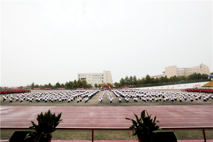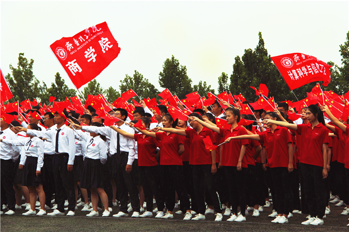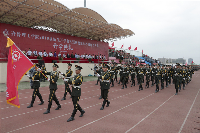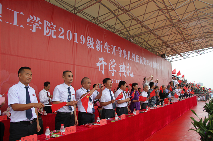 典礼首先举行了阅兵式,2019级新生代表、教师代表先后发言,对新生军政训练先进集体和个人进行了表彰,全体新生在国旗下向祖国庄严宣誓。典礼上同时表彰了省级比赛获奖教师、“最美教师”“师德标兵”,全体教师面向国旗郑重承诺,不忘初心、牢记使命,为培养高素质应用型人才不懈奋斗。