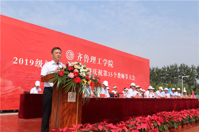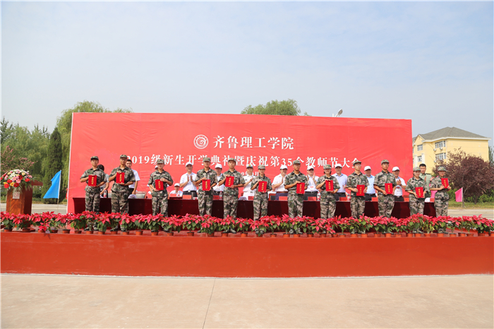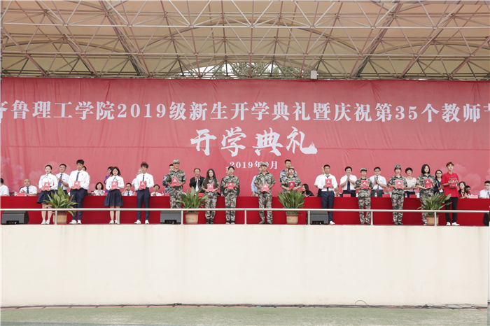 在庆祝新中国成立70周年的欢庆时刻,我校2019级新生开学典礼暨庆祝第35个教师节大会在两校区隆重举行。我校高级顾问王长根将军,我校老领导奚正楷教授、王琰璧教授、陈连璧教授、朱摩西教授,军训团领导,党委书记向来生、校长常翠鸣等校领导,二级教学单位、部门负责人,教师代表出席典礼并在主席台就座。