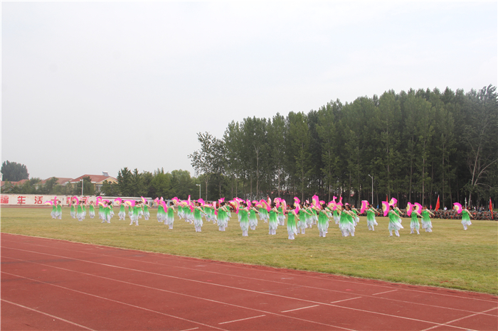 典礼上,2019级新生奉献了精彩的大型团体项目表演。最后全场起立,挥舞着国旗放歌《我和我的祖国》,共同祝愿我们伟大的祖国繁荣昌盛!