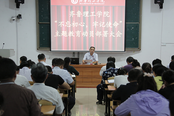 党委书记向来生在会上作动员讲话。向来生指出,全校党员干部要深入学习贯彻习近平总书记在“不忘初心、牢记使命”主题教育工作会议上的重要讲话精神,认真落实党中央、省委关于“不忘初心、牢记使命”主题教育的部署以及省委教育工委、省教育厅“不忘初心、牢记使命”主题教育动员部署会的要求。他强调,全校党员干部要深刻认识开展主题教育的重大意义,准确主题教育目标要求和根本任务,切实增强思想自觉、行动自觉,用实际行动为教育事业做贡献,为我校建设发展发挥先锋模范作用。他还强调,各个支部、全体党员,思想要高度重视,按照部署要求,扎扎实实地抓好落实,真学真做真改真干,切实让这次主题教育取得实效。各支部书记、各部门领导要切实履行职责,带头学习、组织学习、督促学习。要建立常态化督导检查机制,把督导检查贯穿于主题教育实践活动始终。通过开展主题教育实践活动,进一步提升单位的组织力、凝聚力、向心力,更好地推动教育教学工作,更好地推进学校全面建设发展。