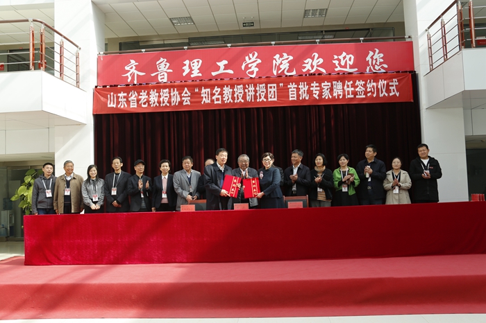 10月30日,山东省老教授协会“知名教授讲授团”首批专家聘任签约仪式在我校举行。山东省高校工委原副书记、山东省老教授协会常务副会长宋焕新,山东中医药大学原纪委书记、山东省老教授协会副会长兼秘书长毛有高,省老教协有关领导,“知名教授讲授团”成员;学校董事长、校长,山东省老教授协会副会长常翠鸣出席会议。山东工程职业技术大学、山东海事职业学院、德州科技职业学院等学校领导,副校长张庚灵、魏希启、赵云生、单成娟,相关部门负责人参加会议。仪式由山东省老教授协会副会长兼秘书长毛有高主持。
