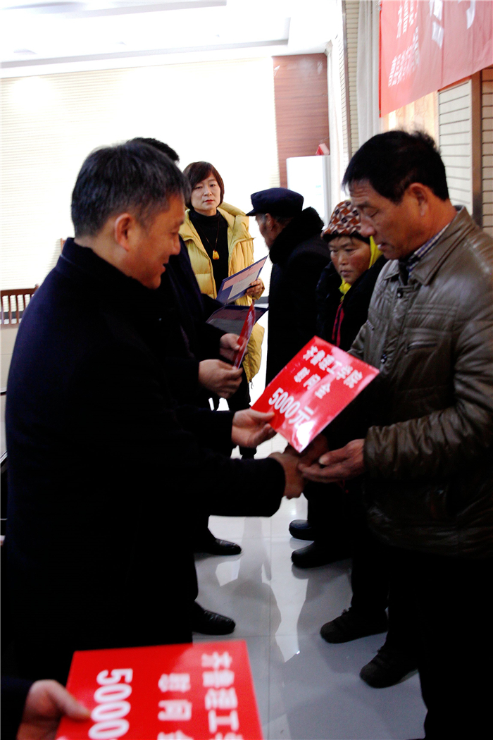 本次活动采取集中组队、分散走访的方式。分别在淄川、费县、临沭、曹县、单县等地教育局召开现场会,现场会上,学校领导和老师详细宣传和解读了国家和学校的资助政策,传达了学校对家庭经济困难学生的深切挂念和关怀帮助,并为家庭经济困难的77位学生每人发放了5000元的慰问金,鼓励他们树立信心,正确面对和努力克服困难,保持良好的心态,努力学习。
