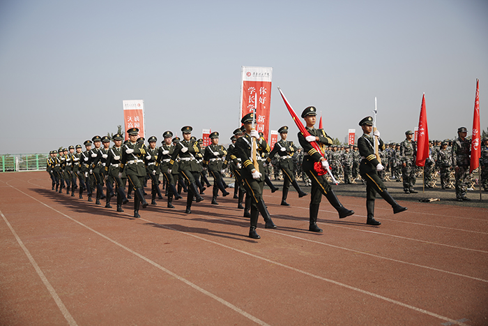 “向国旗,敬礼!”国旗护卫队步伐坚定,英姿焕发,五星红旗冉冉升起,党委书记向来生郑重地向军训团授军训团团旗,2020级新生(第二批)军政训练正式开始,吹响了大学生活开启的集结号。
