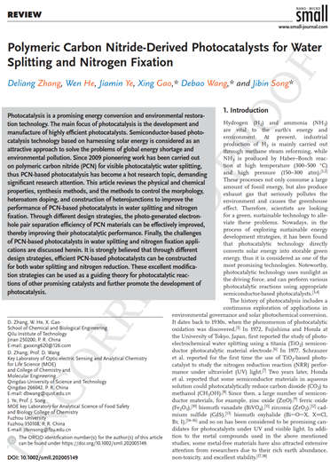 近期,我校化学与生物工程学院教师张德亮以第一作者身份在国际顶级期刊《Small》上发表题为 《Polymeric Carbon Nitride-Derived Photocatalysts for Water Splitting and Nitrogen Fixation》 的学术论文。这是我校首次以第一单位在《Small》期刊上发表论文,实现了学校在SCI影响因子10以上学术期刊发表论文零的突破。