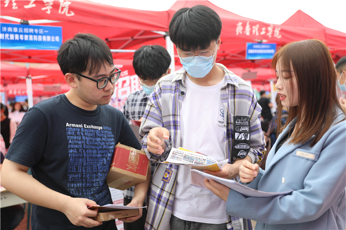 校地企联动协同,合力打造新时代多元化高质量就业服务平台。“开放的山东呼唤人才,发展的山东需要人才”。本场双选会以“就选山东”,“职”等你来为主题,设置济南、青岛、淄博、滨州、宁波等12个地方专区,校企合作对接处、政策宣讲咨询处等4个咨询处,按照“服务山东、面向全国;着力地方,服务周边”的招聘市场建设思路,校地企深入互动,共同合作促进毕业生就业取得新进展,为企业产业转型升级提供人才智力支撑。同时学校联合章丘区人力资源和社会保障局、共青团章丘区委、章丘区人民武装部等相关职能部门积极开展就业创业政策宣讲“进校园”等服务活动,让毕业生全方位了解山东、了解应聘单位引才环境、引才政策与引才需求,引导学生积极就业创业。
