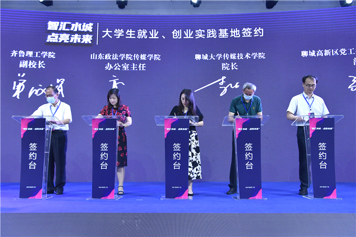 6月11日上午,山东省短视频直播基地聊城中心揭牌仪式暨“智汇水城·点亮未来” 2021中国(聊城)数字经济赋能乡村振兴研讨会在聊城市举办。副校长单成娟受邀参加,并代表学校与山东省短视频直播基地聊城中心签署合作协议,共建“青年就业创业见习基地”,旨在与学校新闻学专业的“产、学、研”合作,共同培养主流网红型传播人才。