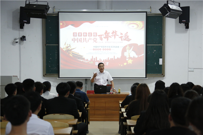 6月16日,中国中共党史学会理事、全国党校系统中共党史教学研究会常务理事、山东省委党校章猷才教授应邀到我校,作了题为《胸怀千秋伟业,百年恰是风华正茂》的专题报告。全校师生通过视频听取报告。报告会由党委副书记李大华主持。
