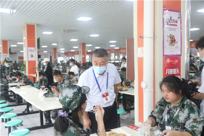 杨校长、赵副校长和学生处王处长来到济南校区超市,认真查看各类生活用品供应情况,详细询问商品的价格,要求超市经营管理人员一定要严格把控商品质量和价格。在学生餐厅,常翠鸣校长带领分管校领导和安全管理办公室韩主任,对环境卫生、原材料采购、饭菜质量、食材检验备案、卫生防疫措施等进行了仔细检查,要求管理人员和服务人员要让新生吃得好、吃的放心。到了午餐时间,校领导和新生一起排队打菜,然后与同学们坐在一起用餐。“同学,今天的饭菜怎么样?”“价格贵不贵?”“同学,你来自哪里,饮食方面还习惯吗?”校领导和学生边吃边聊,仔细听取学生对菜品种类、卫生情况等方面的意见,了解学生的学习生活等情况。
