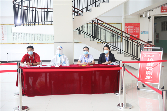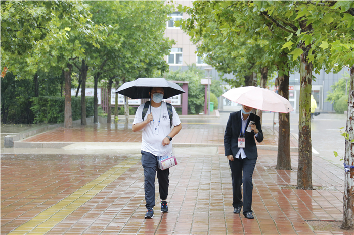 章丘区高教办负责人冒着大雨来到学校指导工作,看望慰问新生和工作人员,驻地的公安交警也冒雨协助维持交通秩序。全校2000多名师生志愿者坚守雨中,在车站机场接站点,在校内各个迎新站点,在宿舍区,疏导交通、转运行李、防疫检查、解答问题,热情、体贴地服务于每一位新生。