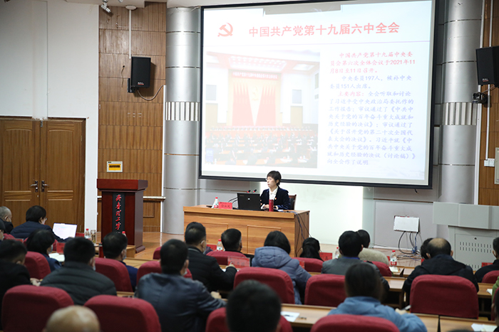宣讲中,徐淑凤以《凝心聚力 勇毅前行——深入学习贯彻党的十九届六中全会精神》为题,着重就党史上的三个历史性决议,以及历史决议的背景、内容和重大意义作了详细的、系统的、深刻的诠释,就历届全会的精神作了系统的梳理,突出就十九届六中全会通过的《中共中央关于党的百年奋斗重大成就和历史经验的决议》作了深入解读。