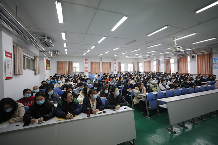张庚灵副校长在主持中表示,徐书记的报告站位高、资料翔实、条理清晰、分析透彻,让我们更全面、深入的把握了十九届六中全会的精神,希望大家深刻领会徐书记的报告精髓,按照学校党委的统一部署和要求,不断把学习、领会、落实十九届六中全会的精神的推向新高潮。