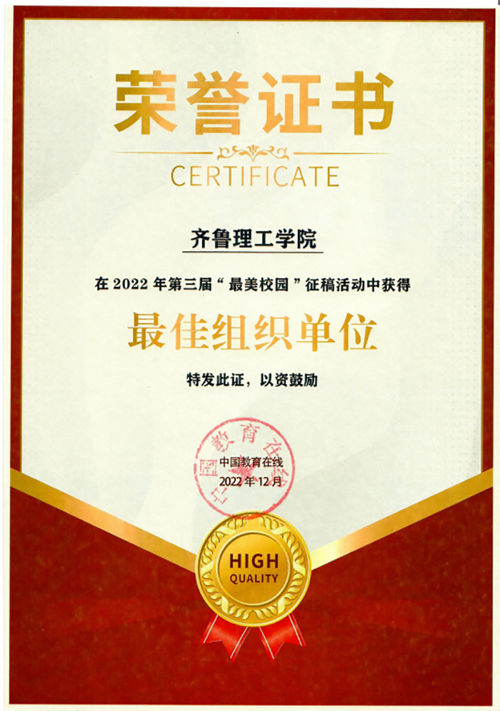 本次活动由中国教育在线主办,涵盖“景靓校园、莘莘学子、园丁风采、领域建设、思政教育”五大主题,是展现山东高校办学与专业特色的宣传媒介和重要窗口。全省参与高校近50所,经过中国教育在线编辑中心和专家组的筛选,优选28所学校作品予以展示,我校荣获“最佳组织单位奖”,四部作品入选展示活动。
