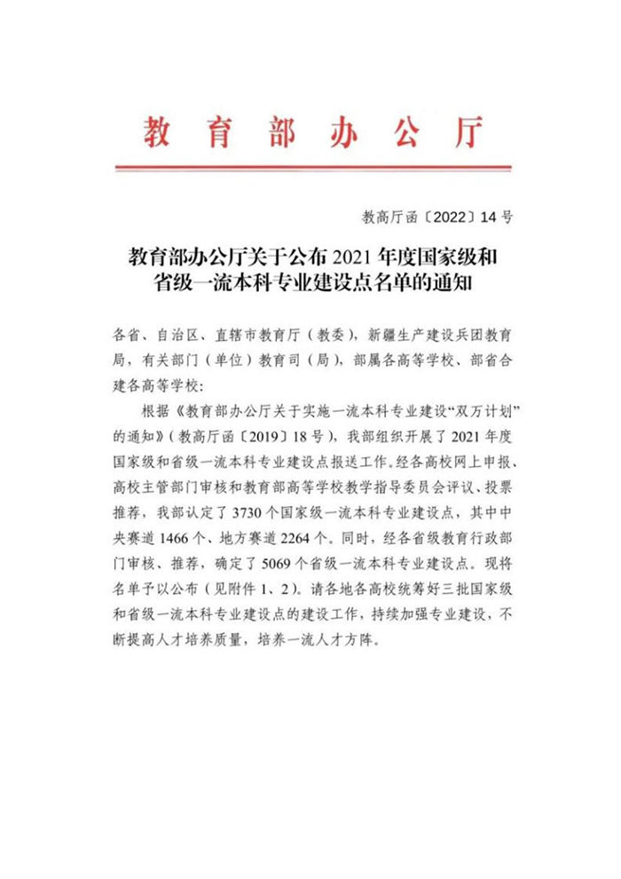 近日,教育部办公厅公布了2021年度国家级和省级一流本科专业建设点名单,我校新闻学专业获批2021年度国家级一流本科专业建设点,护理学专业获批省级一流本科专业建设点。