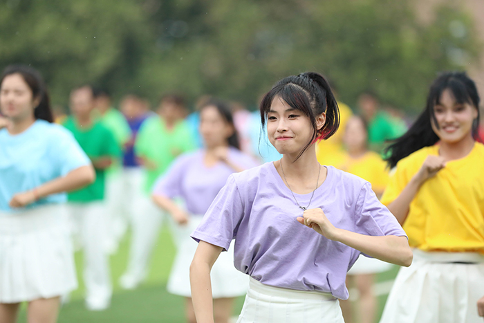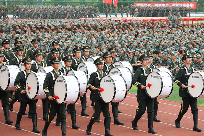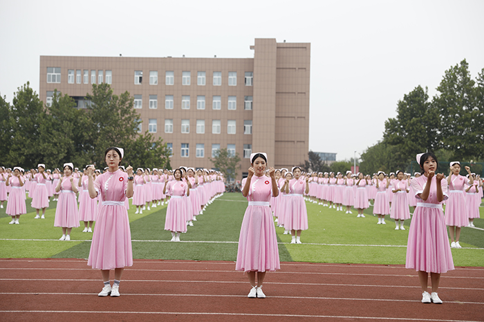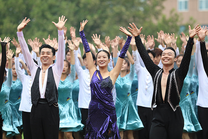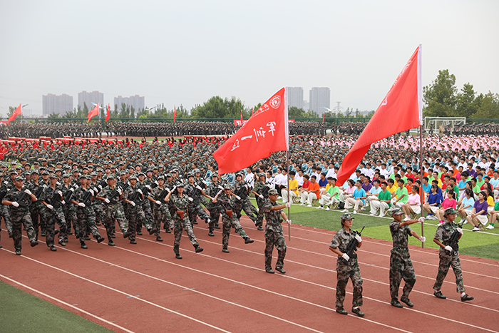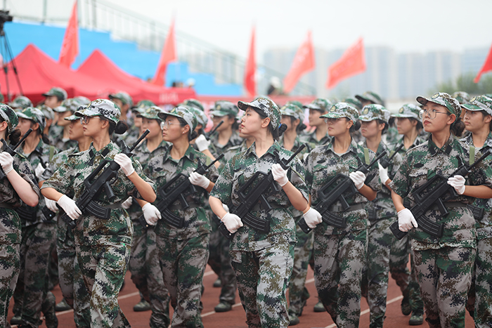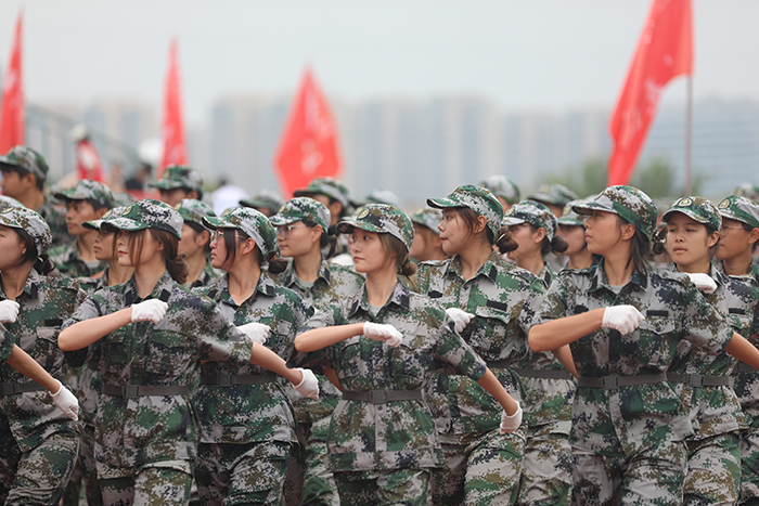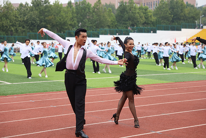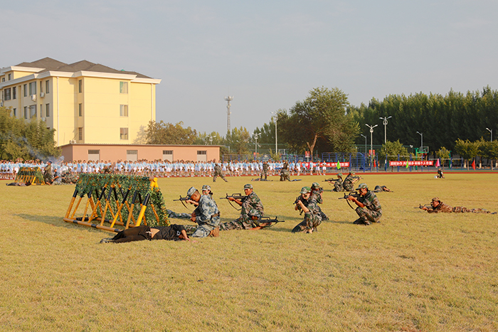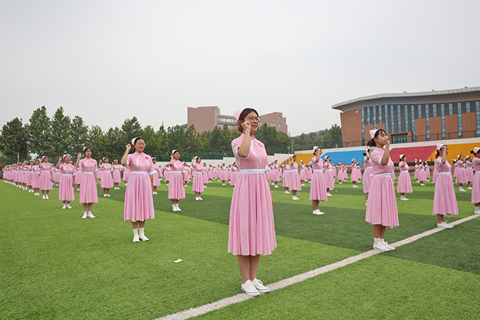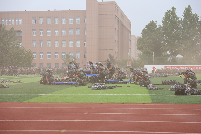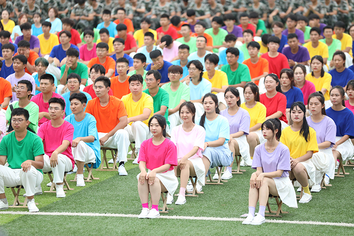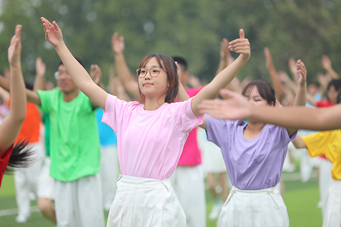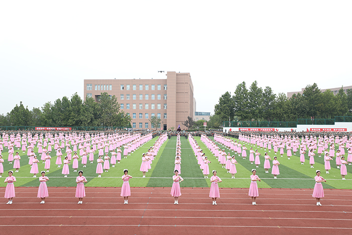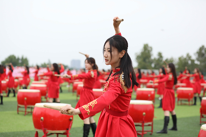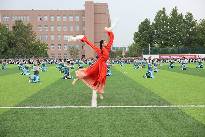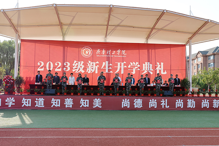 2023级新生进行了精彩的汇报表演。红鼓舞、手语操、军事技能表演、拉丁舞、校园舞、啦啦操、经典诵读等逐一上演,精彩纷呈,新生们以过硬的身体素质和良好的精神状态展示了齐鲁理工学子的青春风采。