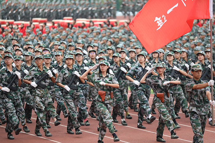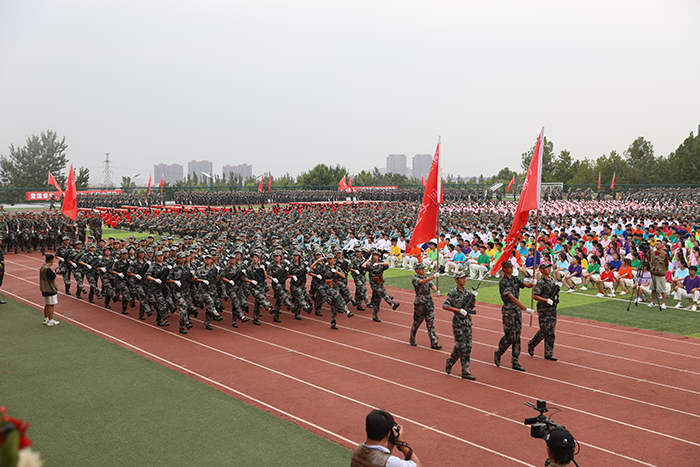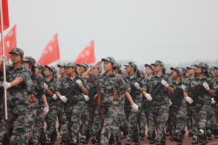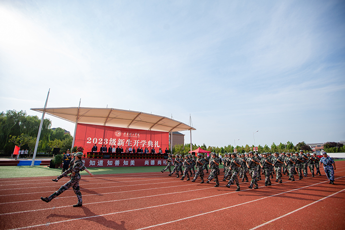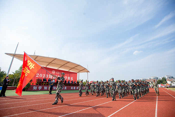 典礼前,首先进行了2023级新生军政训练阅兵仪式,受阅方队迈着整齐的步伐,依次从主席台前走过,他们精神饱满、斗志昂扬,飒爽的英姿展现了2023级学子蓬勃的朝气。