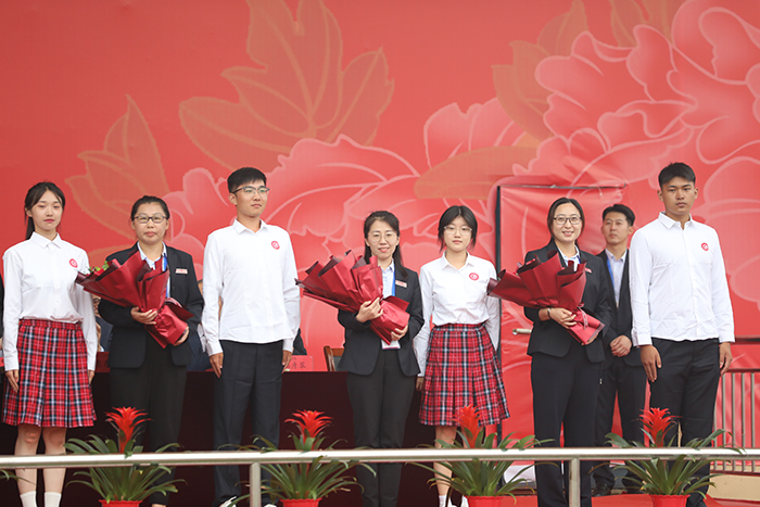 学生为教师代表献花