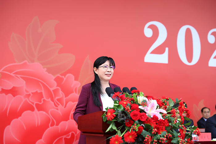 在热烈的掌声中,校长常翠鸣教授发表了热情洋溢的讲话,代表全校师生对2023级新生的到来表示欢迎,为2023级新生介绍了学校的发展情况。常校长对全体2023级新生提出几点希望,希望大家在复兴大业中树牢远大志向,做志存高远的新时代大学生;在齐鲁文化中涵养优秀品德,做道德高尚的新时代大学生;在学习实践中夯实专业基础,做真才实学的新时代大学生;在养成教育中塑造优良品行,做品学兼优的新时代大学生。