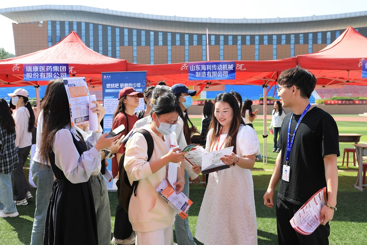 作为学校今年首场大型线下双选会,吸引了鲁南制药、山东京博控股集团有限公司、浪潮电子信息产业股份有限公司等来自全国各地的400多家用人单位,覆盖机械制造、电子通信、计算机、文化传媒、经营管理、教育培训、金融商贸、生物化工等多个专业领域,提供优质就业岗位近2万多个。