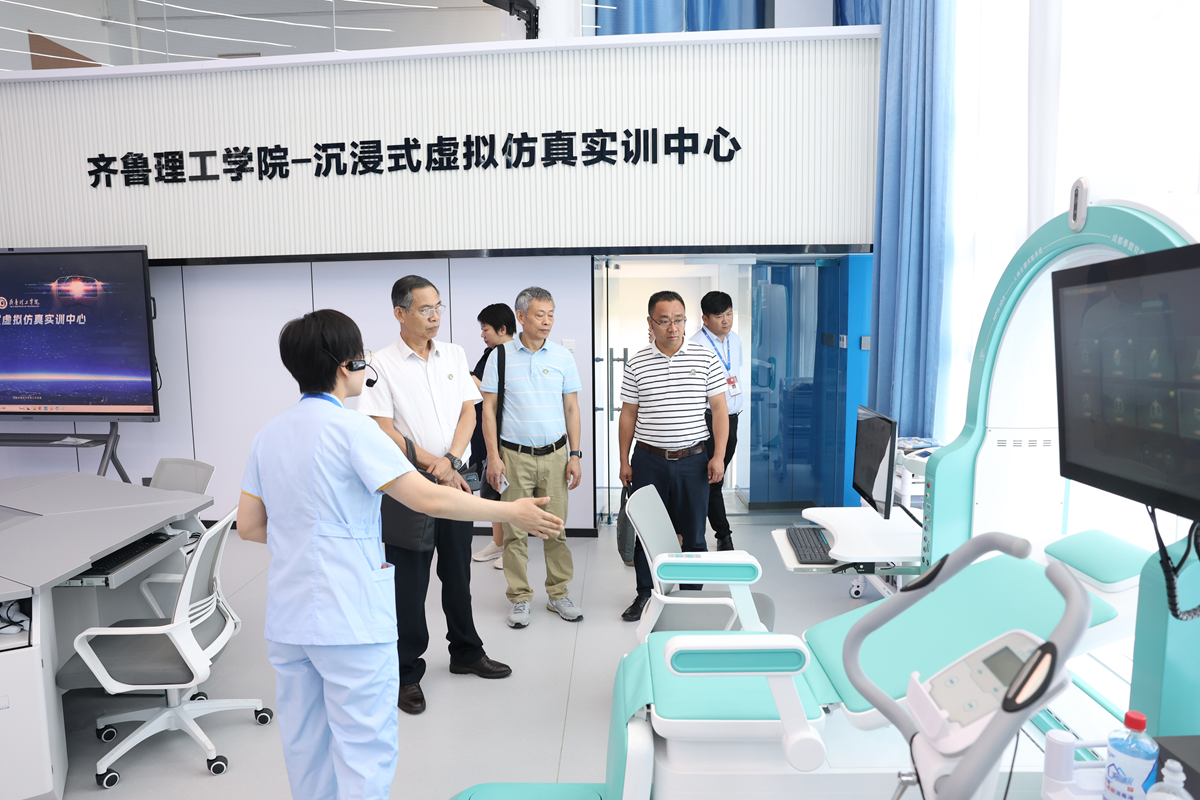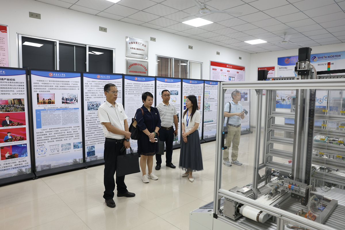 座谈开始前,杨树喆一行考察了中德智慧工厂应用山东省工程研究中心、生物医学诊疗材料山东省工程研究中心、山东省护理虚拟仿真实验教学示范中心等地;在学校四知广场,察看了“一站式”学生社区,了解了学校“四知五融六协同”一站式社区服务体系的运行情况,参观了学校山东党史馆、齐鲁文化馆。