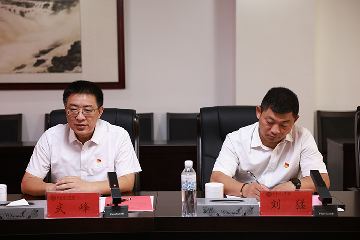 座谈会上,徐淑凤致欢迎词,介绍了学校党建“双创”工作经验。武峰简要介绍了广西外国语学院的基本情况,希望在高质量党建引领高质量发展方面学习我校的先进工作经验,加强合作交流,促进共同发展。