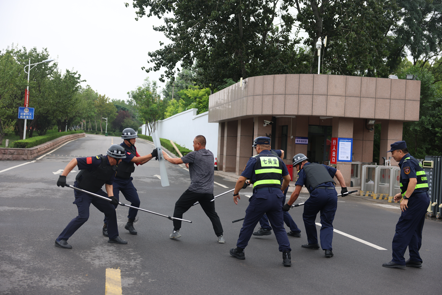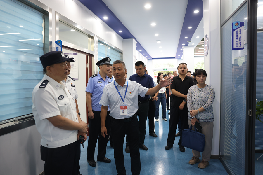 9月11日,双山第二派出所在学校驻地高校“降警情、控发案、护安全”专项工作现场观摩活动在我校举行。章丘区公安分局党委委员、副局长高焕运,治安大队大队长陈振东、副大队长牛占义,双山第二派出所所长景元旺、副所长林少瑜、王如勇及相关负责同志,各驻地高校安保处长、学生处长、保安队长参加活动。学校党委委员、副校长赵庆勇,安全管理办公室、学团工作处等相关职能部门负责人参加座谈和观摩活动。