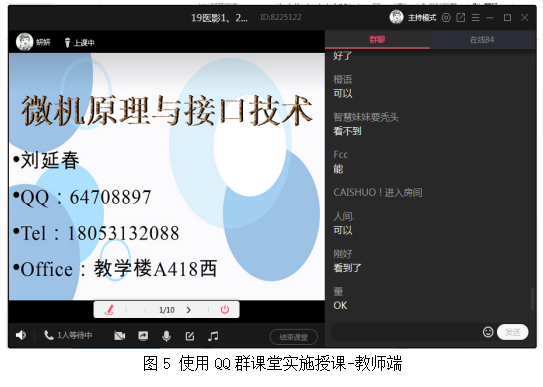 在突如的疫情下,在线教学保证了疫情防控期间的教学进度和教学质量,实现“停课不停教,停课不停学”的目标。为此,学校面向全体教师积极开展网上教学平台应用培训,要求全体授课教师依托泛雅网络教学平台,利用中国大学MOOC、智慧树、雨课堂等平台,建设自己的课程,并制定出网课建设标准,让老师们尽最大的努力引导学生进行网上学习,达到预定教学目标。 本学期,我面向电气工程及其自动化专业、电子信息工程和通信技术专业、面向医学影像技术专业,开展《模拟电子技术B》、《电子测量技术》、《微机原理与接口技术》等课程,教授学生449人。正式上课前一周,我通过学习通上发布通知、联系班委和辅导员等方式,将所有选修本课程4个班的400多名同学全部按班级建好QQ群,对上课的注意事项、学习资料、提醒签到等做了详细通知。开课前2天,因为担心周一全校开始上课后网络压力过大,学生们可能会出现无法打开学习通上课件的问题,我将第一周授课用到的全部教学资源发送到QQ群,供同学们下载使用,还安排全班同学进入学习通的同步课堂进行线上授课测试,随机发布了签到、测验及主题讨论等环节,了解了一下学生们的基础。 每节课结束后,我通过学习通发布讨论话题,了解学生对本堂线上课的评价。从学生评论看,同学们普遍反映这种线上授课模式新颖,虽然看不到老师,但没有影响实际授课质量,总体效果和在课堂上听讲差不多,而且我在课堂的最后15-20分钟会带着同学们一起完成部分测验,学生们普遍反映这种当堂测验比较能检验出本堂课的理解和接收情况,有助于他们及时的查漏补缺。 通过网上授课,结合同学们的反馈,我积极总结,查缺补漏。在实际授课前,通过学生群和教研室群反复演练实际授课渠道,并在教研室群里交流每天的授课经验,即使出现网络堵塞,某个教学环节进行不下去,我也不会慌张,会立即转到另一个授课渠道按时保质完成当堂课的授课任务。 在探索中我取得了许多宝贵的经验,提高了教学能力,更新了教学理念,同时在教学方式、课程资源、自主学习等方面打开了新的思路。积极改进线上教学存在的短板,提高线上教学效率,对于后期的日常教学具有十分重要的意义,让我们大家共同努力,扬长补短,用更高的信息化手段促进学校教育教学事业蓬勃发展。