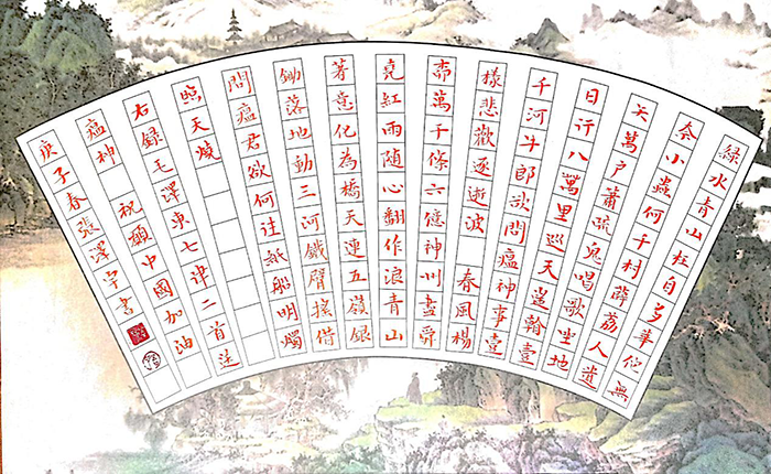 -----艺术学院学子举办共抗疫情主题网络书法展 庚子春始,新型冠状病毒肺炎席卷中华大地,党中央、国务院高度重视,对疫情防控作出重大部署,举国上下众志成城、共克时艰,正在坚决打赢这场疫情阻击战。 为向奋战在抗疫第一线坚守工作岗位的“逆行者”和“勇士们”致敬,艺术学院书法专业的同学们运用自己所长,积极传播正能量,自发组织并开展了“以笔做枪,以文抗疫”共抗疫情为主题的网络书法作品展,一幅幅书法作品凝聚人心、鼓舞士气,诠释了中华民族一方有难,八方支援的团结精神,也充分表达了为打赢这场疫情防控阻击战贡献自己的一份力量。
