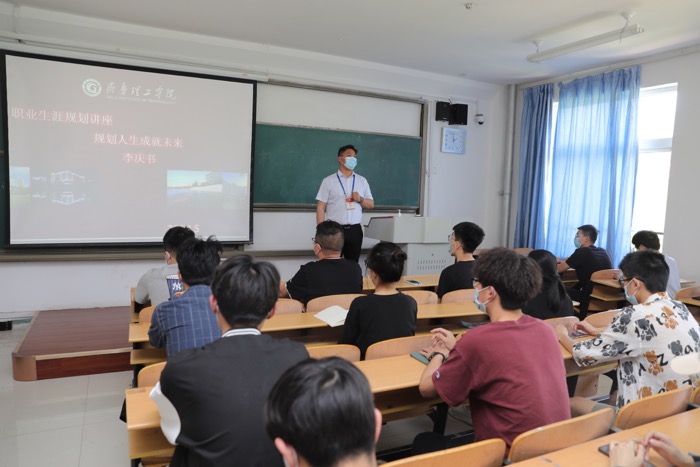 李庆书从大学生职业发展与人生规划、如何规划职业生涯以及职业生涯规划书的制作等方面进行了详细讲解,并将规划书大致分为自我分析、决策过程、目标制定、评估与反馈等内容,向同学们具体介绍了每项内容的撰写要求,鼓励同学们在选择职业目标时,充分认识自我,主动探索自己真正想要什么、能做什么以及适合做什么,做到知己、知彼、知环境,做好决策与反馈调整。