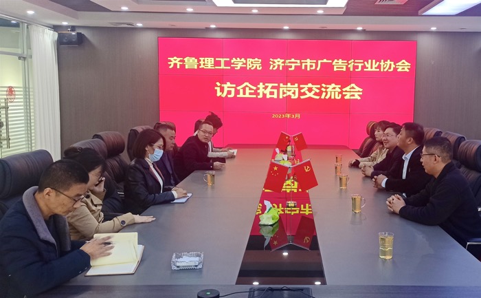 交流中,季东彬对学校考察团的到来表示欢迎,随后详细介绍了济宁市广告行业协会的发展概况、目前各会员单位对毕业生的需求现状。高良博院长对季东彬会长的热情接待表示感谢,介绍了学校的基本情况,并希望双方建立起更加紧密的人才培养合作关系,在专业实践、产学研合作共建、学生培养和服务社会等方面开展深度合作。就业副院长李庆书从艺术学院现状、各专业概况以及毕业生就业等情况进行了介绍。