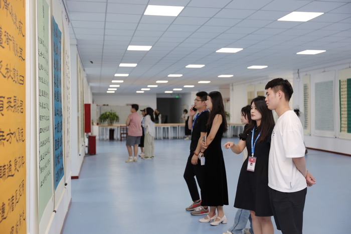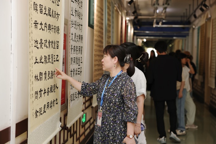 更新时间:2024-06-26 11:07 6月25日,艺术学院在实验楼展厅举办“隶韵千秋”——书法学专业2023级隶书结课作品展,艺术学院书法学专业师生共同观展。